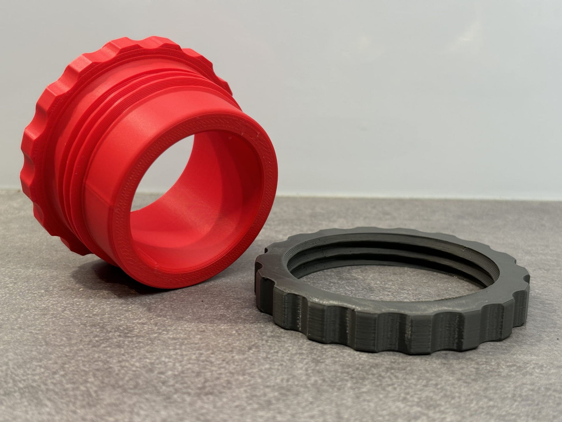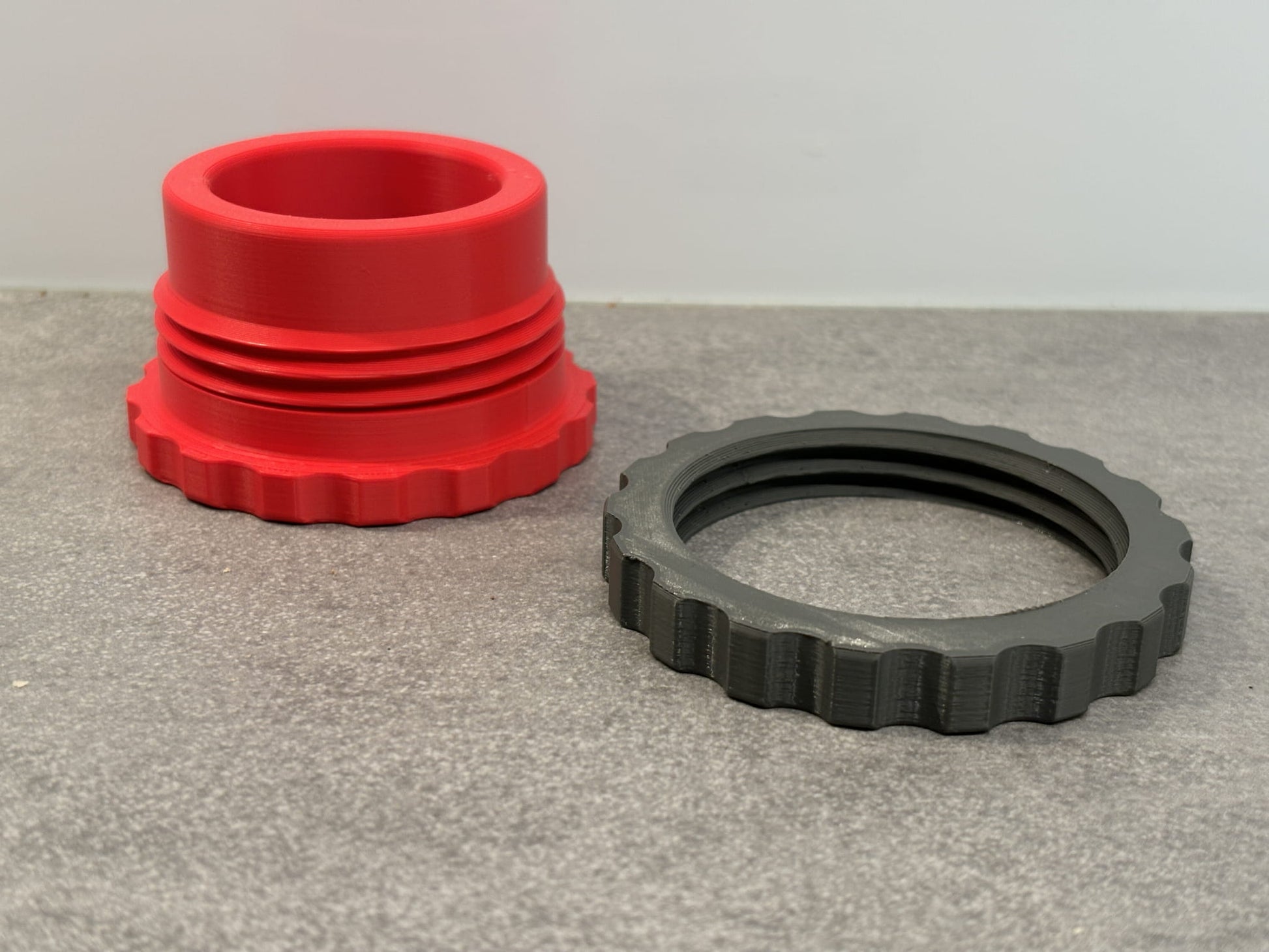Wszystkie elementy zamieniające thermomixa w bimbromix zostały wykonane w technologi druku 3D. Zakrętka jest już gotowa do użycia i nie trzeba w żaden sposób jej obrabiać.